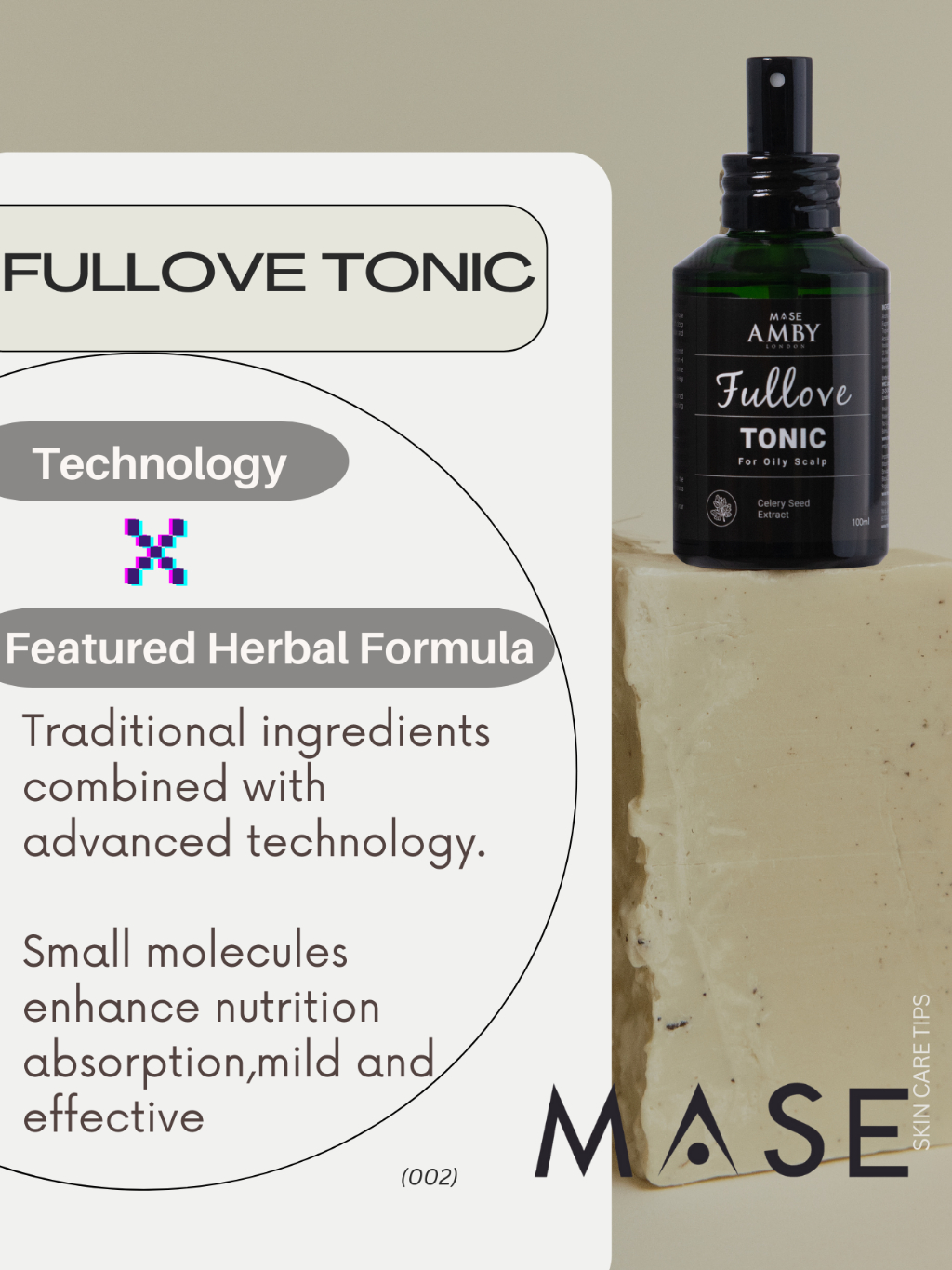 Fullove tonic features small molecules to greatest absorption that awakens the vitality of hair follicles. The active ingredients interact positively with your hair to provide moisturisation, strengthening, protection and repair damages.