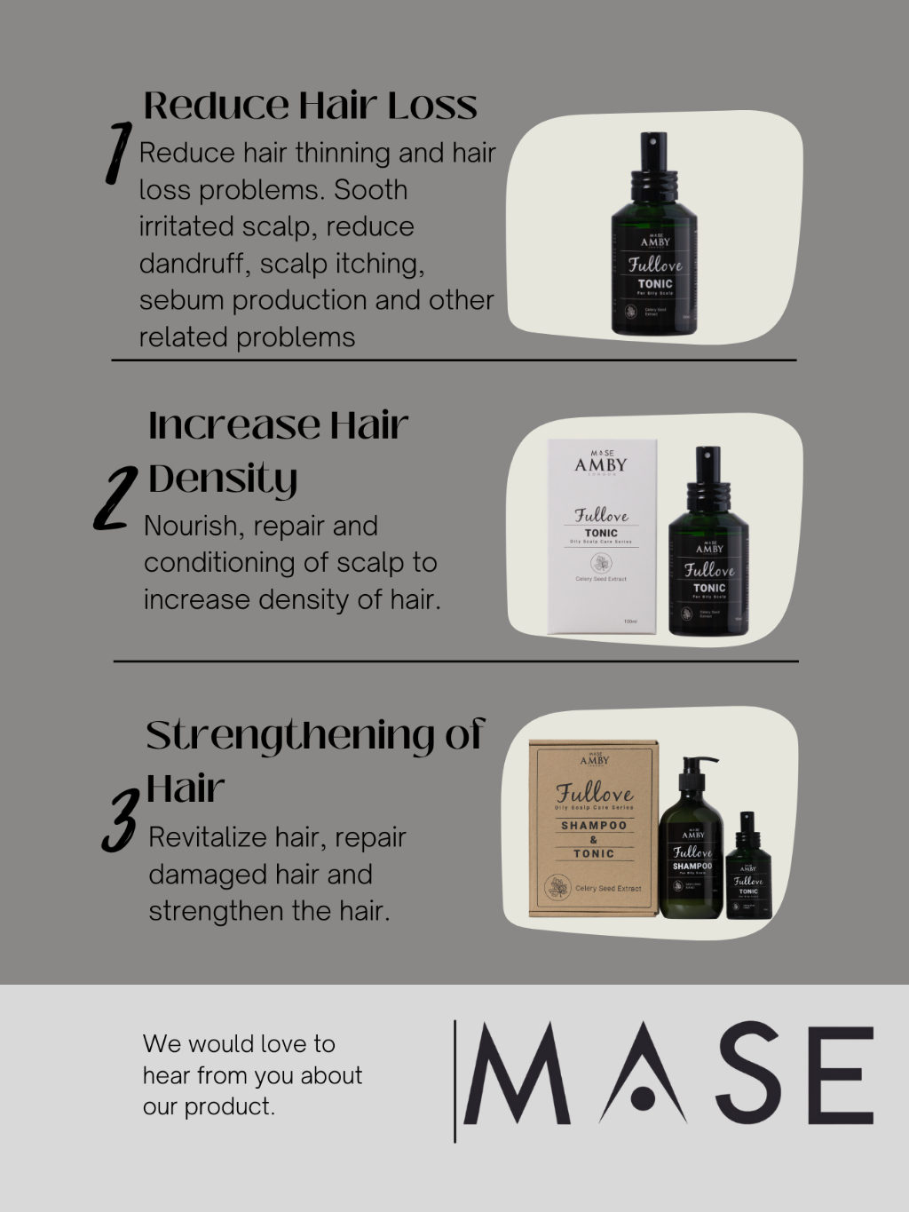 ● ✅【SATISFACTION GUARANTEED】: Each Fullove hair tonic we sell is inspected carefully and packaged well to ensure that it is safe and of the highest quality. If for any reason you feel that it does not meet your expectations, do reach out to us and we will get things right for you.