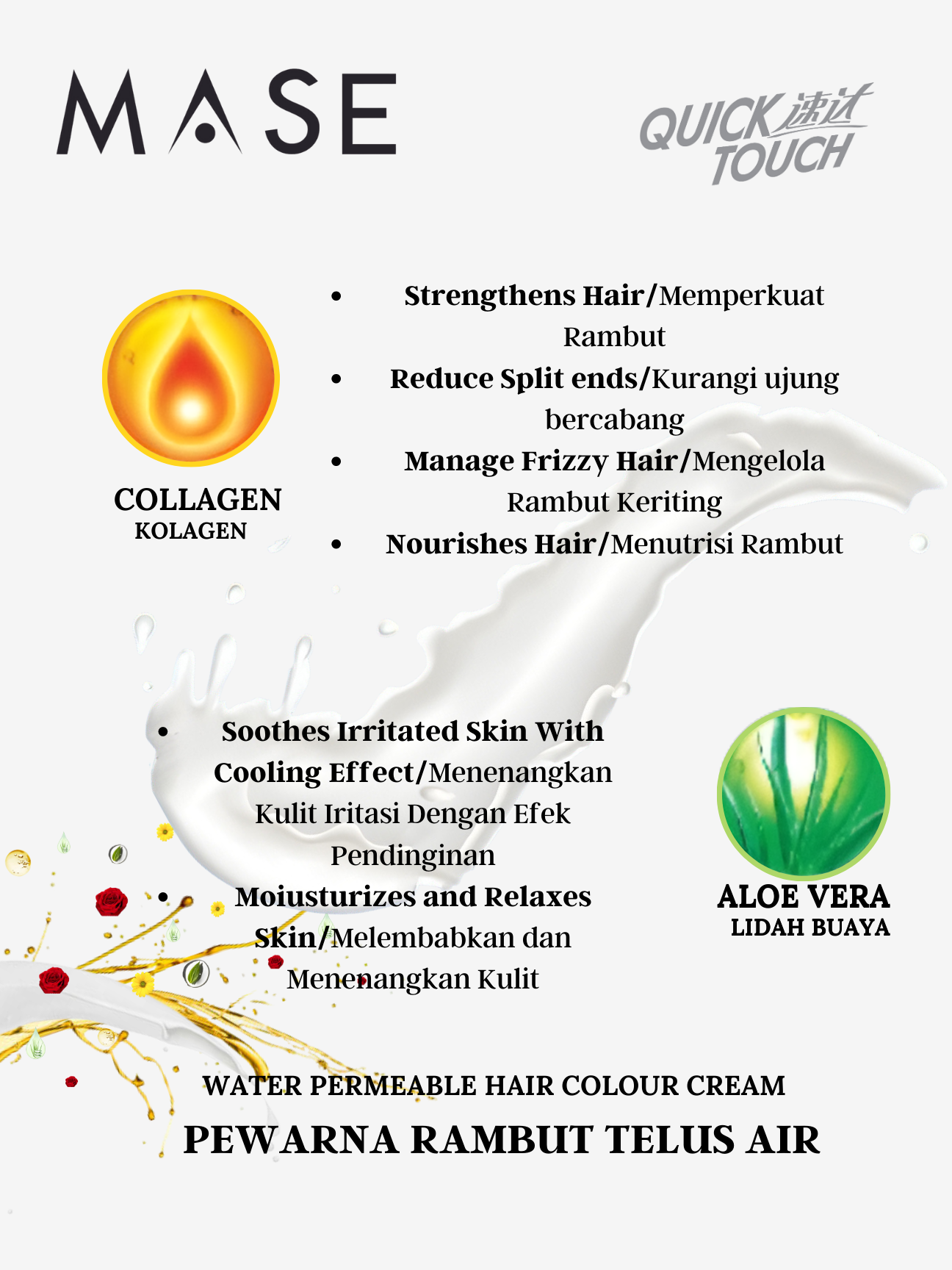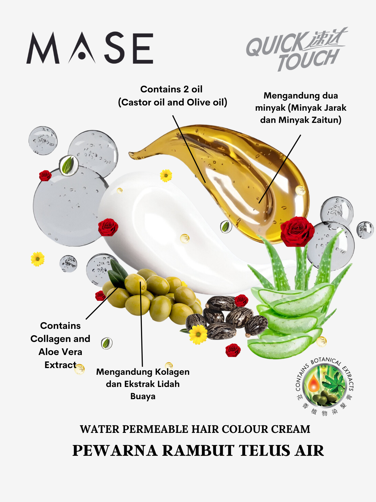● ✅【PROTECTS】: Our ammonia-free Quick Touch hair color box is formulated with the mission to avoid hair damage during the coloring process but at the same time, nourishes both hair and scalp. Constructed with Collagen, Castor Oil, Aloe Vera and Olive Oil extracts – they moisturize, smoothen, add strength and shine, serving as hair and scalp protective agents.