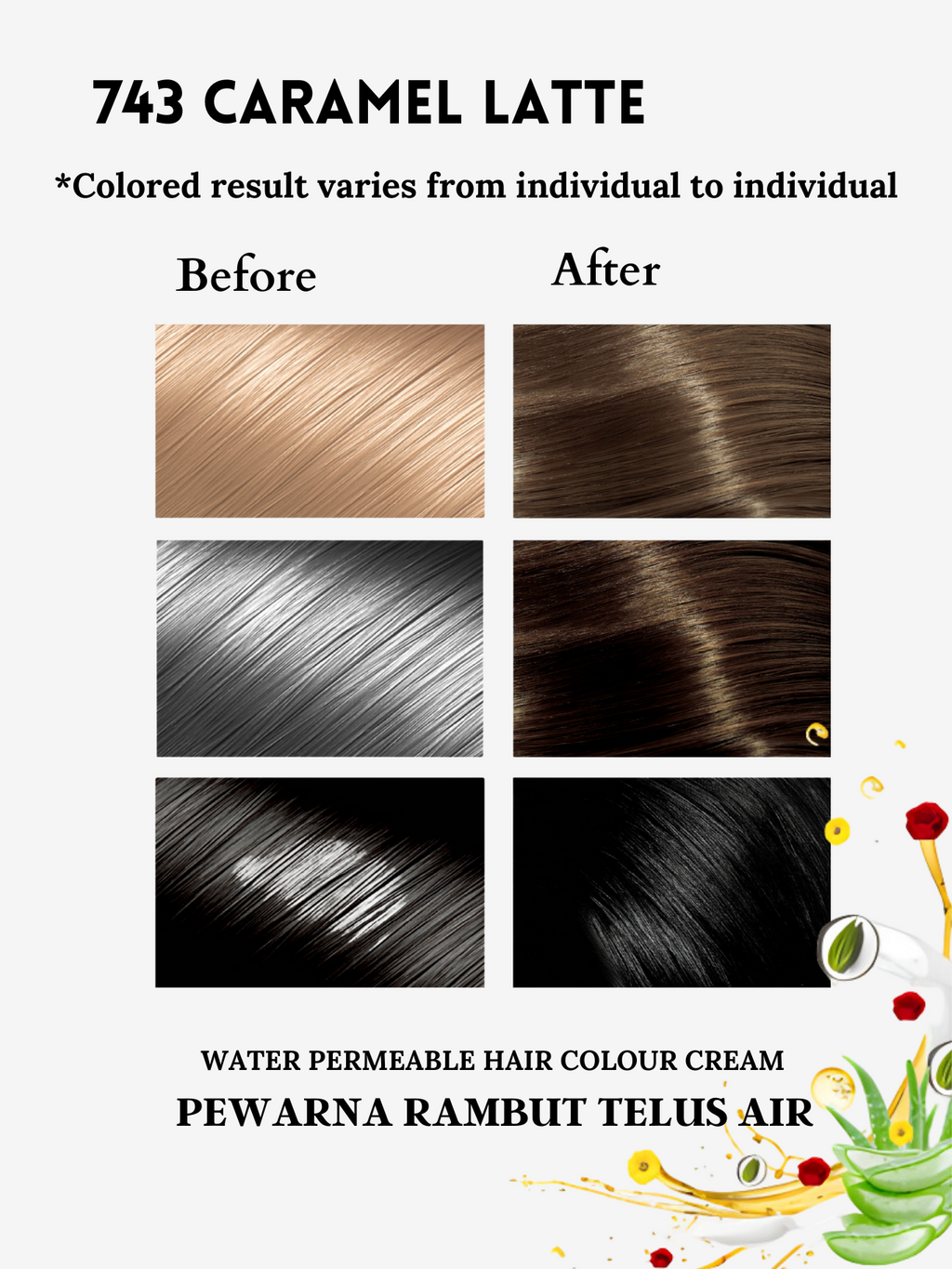 Specifications of QUICK TOUCH 5 MINUTE HAIR COLOR-743 Caramel Latte for permanent hair dye color 2020